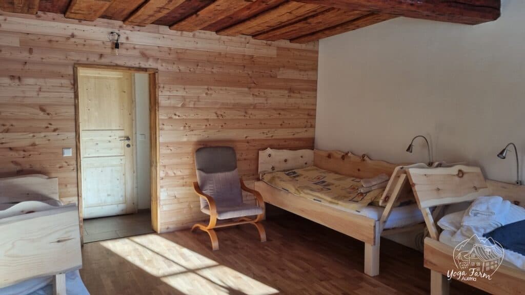 Laut dem Konzept wurde möglichst viel vom Bestand erhalten. Bei der Auswahl der Materialien stand immer im Vordergrund natürliche und nachhaltige, traditionelle Technologien anzuwenden, wie z.B. Lehmputz in den Zimmern, Sichtflächen der alten Holzwände etc.